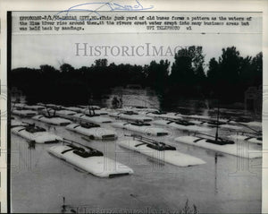 This junkyard of old buses forms a pattern as the waters of the Blue River rise around them.