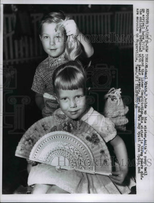 1958 Press Photo Michael Wyatt holds sister Anita aboard Liner Constitution