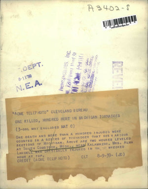 1939 Press Photo Homes destroyed in tornado in South Comstock, Michigan