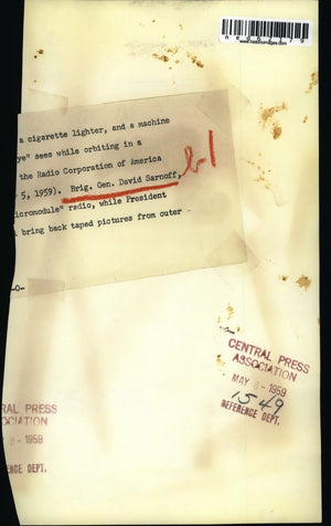 1959 Press Photo Brig Gen David Sarnoff on Radio Corporation of America