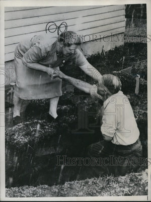 1946 Press Photo Mrs. James Sout Helps Husband James Stout Out of Caved Trench