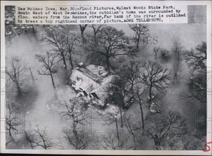 1951 Press Photo Air view of floods at Walnut Woods park near Des Moines Iowa