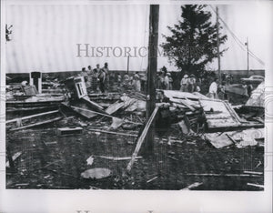 1953 Press Photo Adair Iowa neighbors look at wreckage of Boyd Falconer farm hom