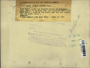 1933 Press Photo Adamson Family By Fire Outside After California Earthquake