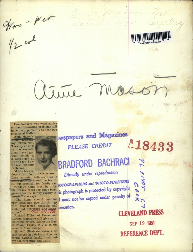 1951 Press Photo Anne Mason, decorator for Lees carpets on Mollie's home forum
