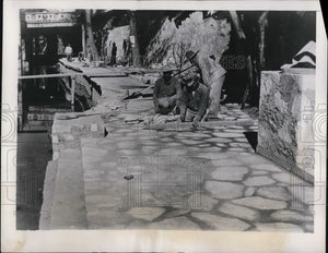 Mason at work on one of the flag stone.