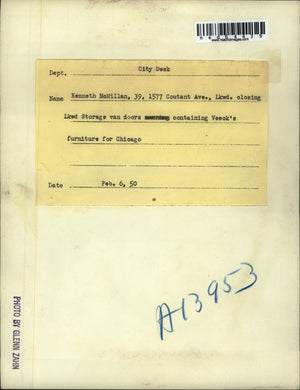 1950 Press Photo Kenneth McMillan at Lakewood Storage for Chicago