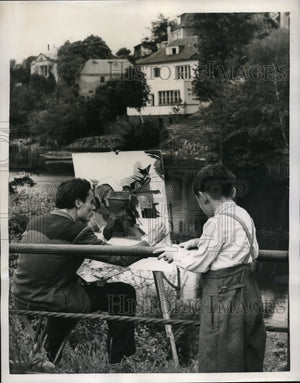 1951 Press Photo Berlin Germany A West Berlin youngster watches as this painter