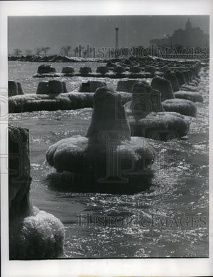 1960 Press Photo Inverted Mushroom shaped pilings alogn Chicago lakefront