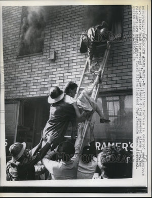 1957 Press Photo North Adams Mass Mrs Lillian Forbush rescued from a fire