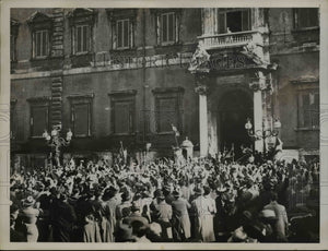 Thousands of Romans gather infront of the Royal Palace in Roman, the demonstration inspired by the Great Italian Victory at Amba Alagi, Ethiopia overseen by King Victor Emannuel seen on the balcony.