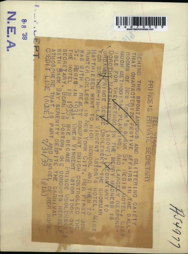Dorothy Matthiesen, secretary to Urbane Prince Serge Obolensky