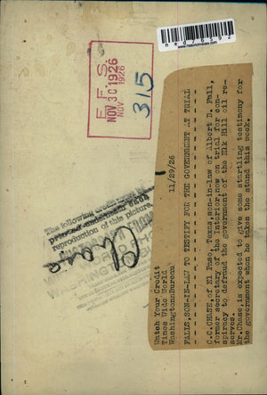 1926 Press Photo Falls, Son in law to testify for the Government of trial
