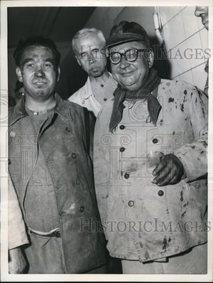 German Social Democratic Party Chairman Erich Ollenhauer(R), as he holds a glass of milk after visiting a mine near Bochum, in the Rugh.