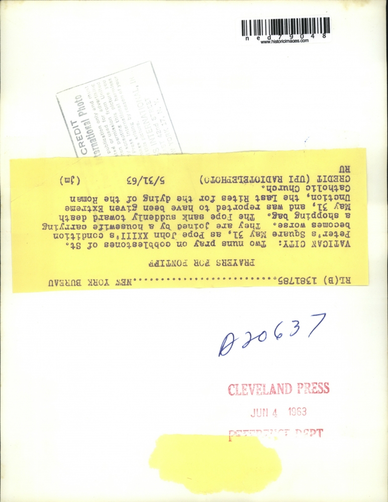 1963 Press Photo Vatican City Italy, Pope John XXIII condition grows worse, pray