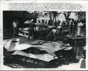 1959 Press Photo Workers Try To Free Car With Charles Rosenblatt,Ruth Berkowitz