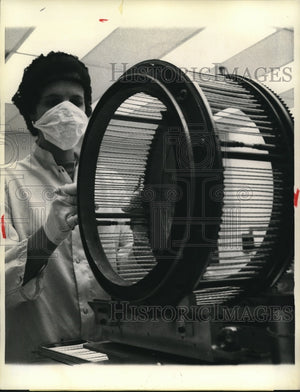 1975 Press Photo Riding the "Ferris Wheel" are cylindrical ceramic rods