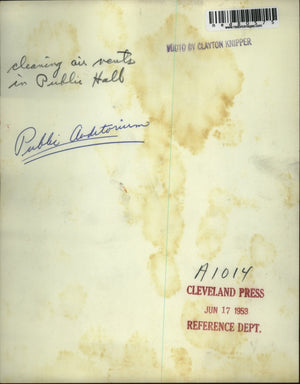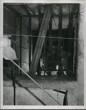 1953 Press Photo Cleaning air vents in public hall in public auditorium.
