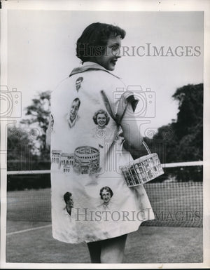 1953 Press Photo Tennis players faces from the fabric of Gloria Butler's coat