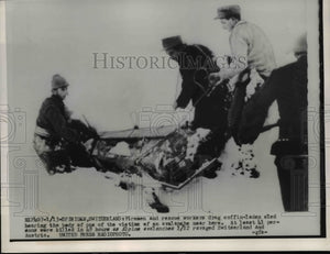 1954 Press Photo Spirigen Switzerland resciue workers remove avalanche victims