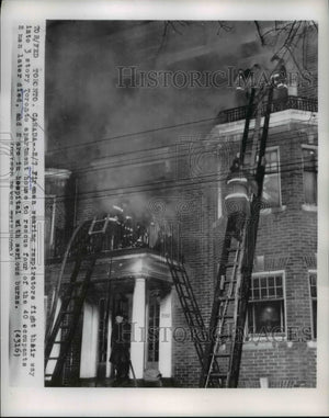 1956 Press Photo Toronto Canada firemen battle apartment house fire - ned81131