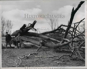 1961 Press Photo Deck Metz and Paul Bragie under the broken tree