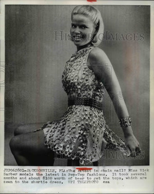 1957 Press Photo Miss Vick Barbels with the latest in Pop Top fashion