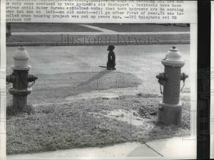 1959 Press Photo Two hydrants that are six feet apart seen causing spills