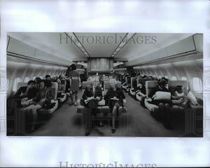 Expanded dimensions of McDonnell Douglas DC-10's wide bodied fuselage. Cabin interior is 18 feet 9 inches wide at passenger seats level and approximately 8 feet high. Deluxe first class section, shown here in photograph taken in DC-10 interior mockup