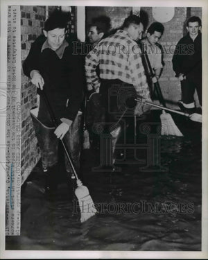 As the Ohio River begins ti recede in the area, workers start in with broom in the basement of the Hotel Lafayette to start clean-up operations.