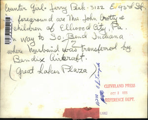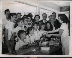 1955 Press Photo Counter girl Jerry Peak In foreground Mrs John Crotty and