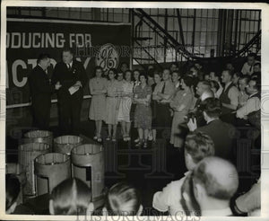 1942 Press Photo Robert Spring GE radio worker, BG Tang at award ceremony