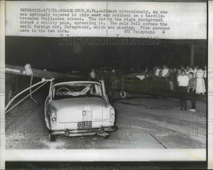 1961 Press Photo Car Crushed by Fallen Utility Pole, Charleston West Virginia