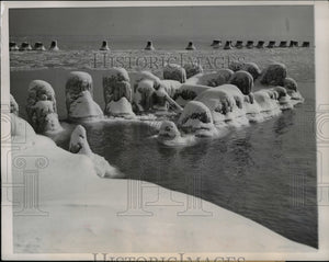 1949 Press Photo Chicago Ill. posts in Lake michigan covered in ice & snow