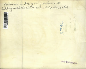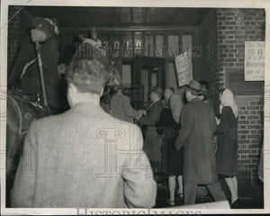 1947 Press Photo Insurance workers gaining entrance to building with police help