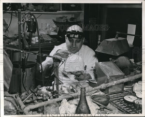 1946 Press Photo Irving A. Goldman Doing a Plastic Skull
