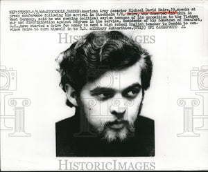 1968 Press Photo Army deserter Michael David Haire at press conference in Sweden
