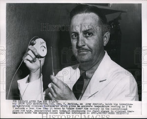 1954 Press Photo Geo Perkins Holding his Electronic Clinical Thermometer