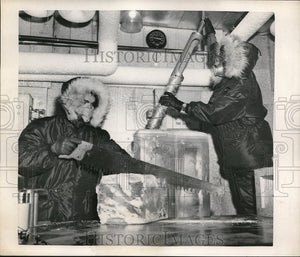 1955 Press Photo Tom Olsen and Glenn Walker in Army Engineer Corps testing lab