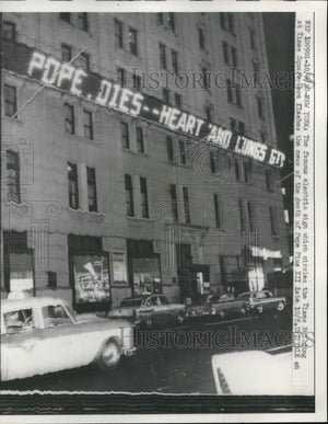 The famous electric sign wich circles Times Building at Times Square flashes the news of the death of Pope Pius XII.