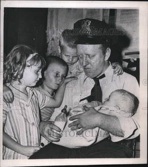 1947 Press Photo Police Officer William McNulty w Kubon Children & Baby, Chicago