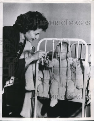 1956 Press Photo Mrs America Cleo Maletis with child at Copenhagen kindergarten