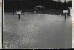 1957 Press Photo Water Covering Baseball Park Lot After Two Day Rain