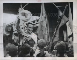 1945 Press Photo Yshid Shica Cheered by Communist Followers following Release