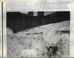 1960 Press Photo Snow Caved in Roof of Grain Storage Elevator in Kansas