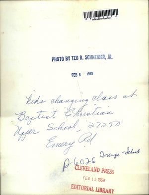 1969 Press Photo Kids changing class at lockers at Baptist Upper school
