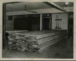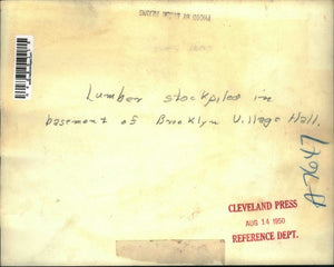 1950 Press Photo Cleveland Ohio lumber stockpiled at Brooklyn City Hall