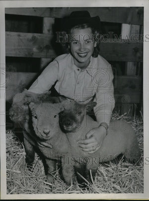 1950 Press Photo Marilyn Hansen with her triplet lambs