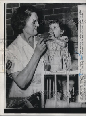 1952 Press Photo Mrs.Vigenmred cross worker,with Baby Veronica after stricken
