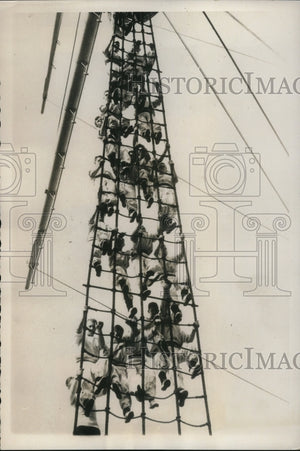 1939 Press Photo of British sailors performing climbing drills.